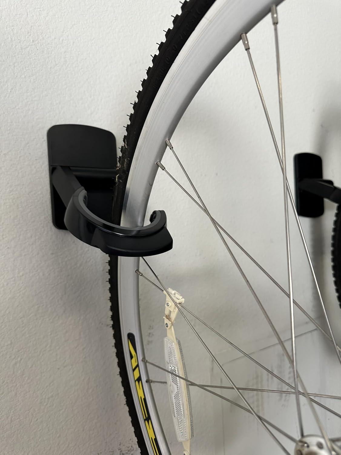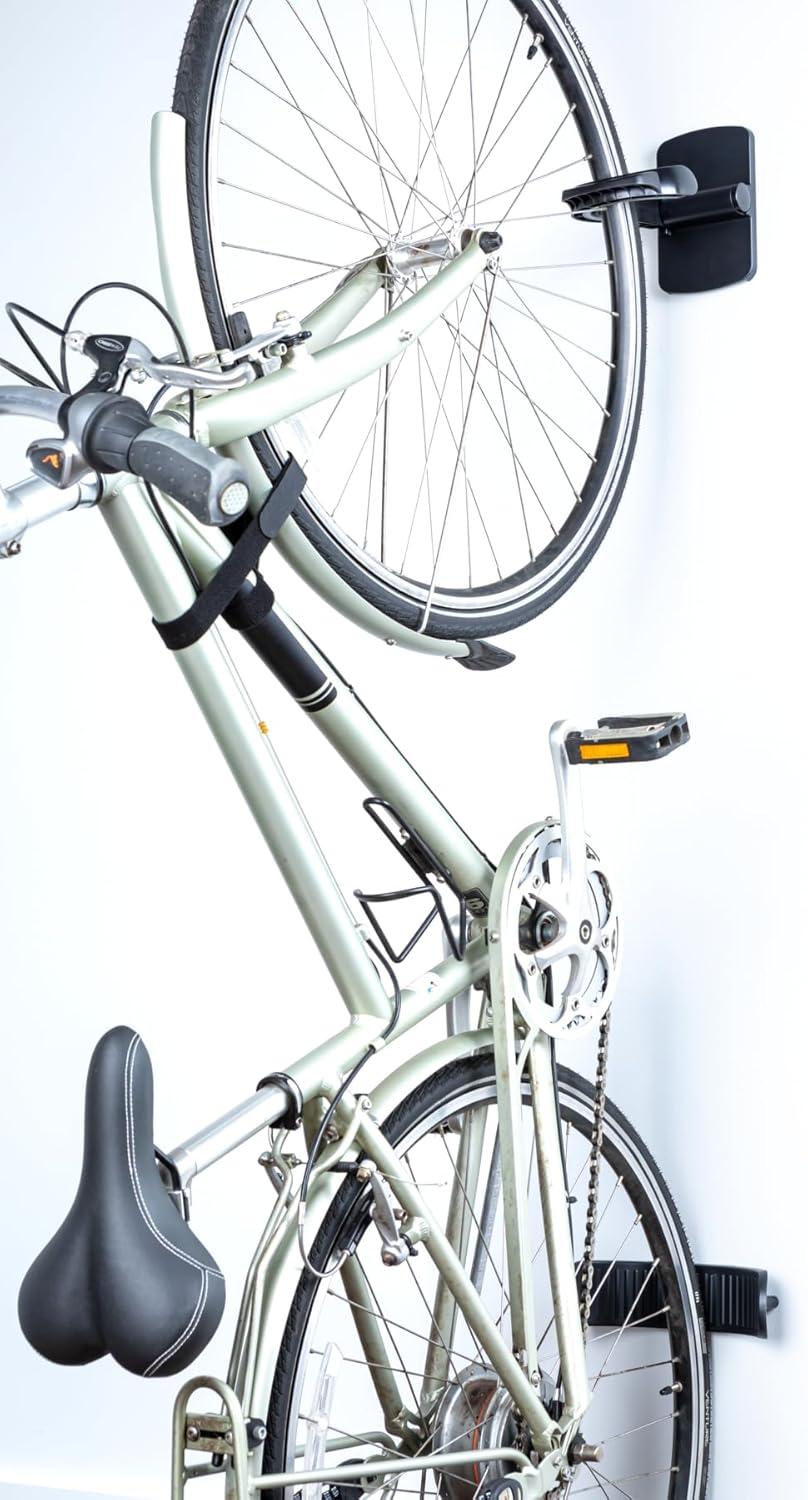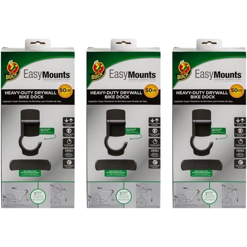 HEAVY DUTY: EasyMounts Heavy-Duty Bike Docks bring you the convenience of adhesive with the security of pins to up to 50lbs. Each bike wall mount securely holds 20-29 in. tires and up to 50 lb. of weight — no lifting required!