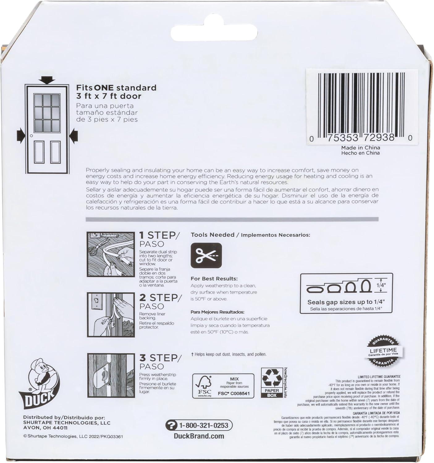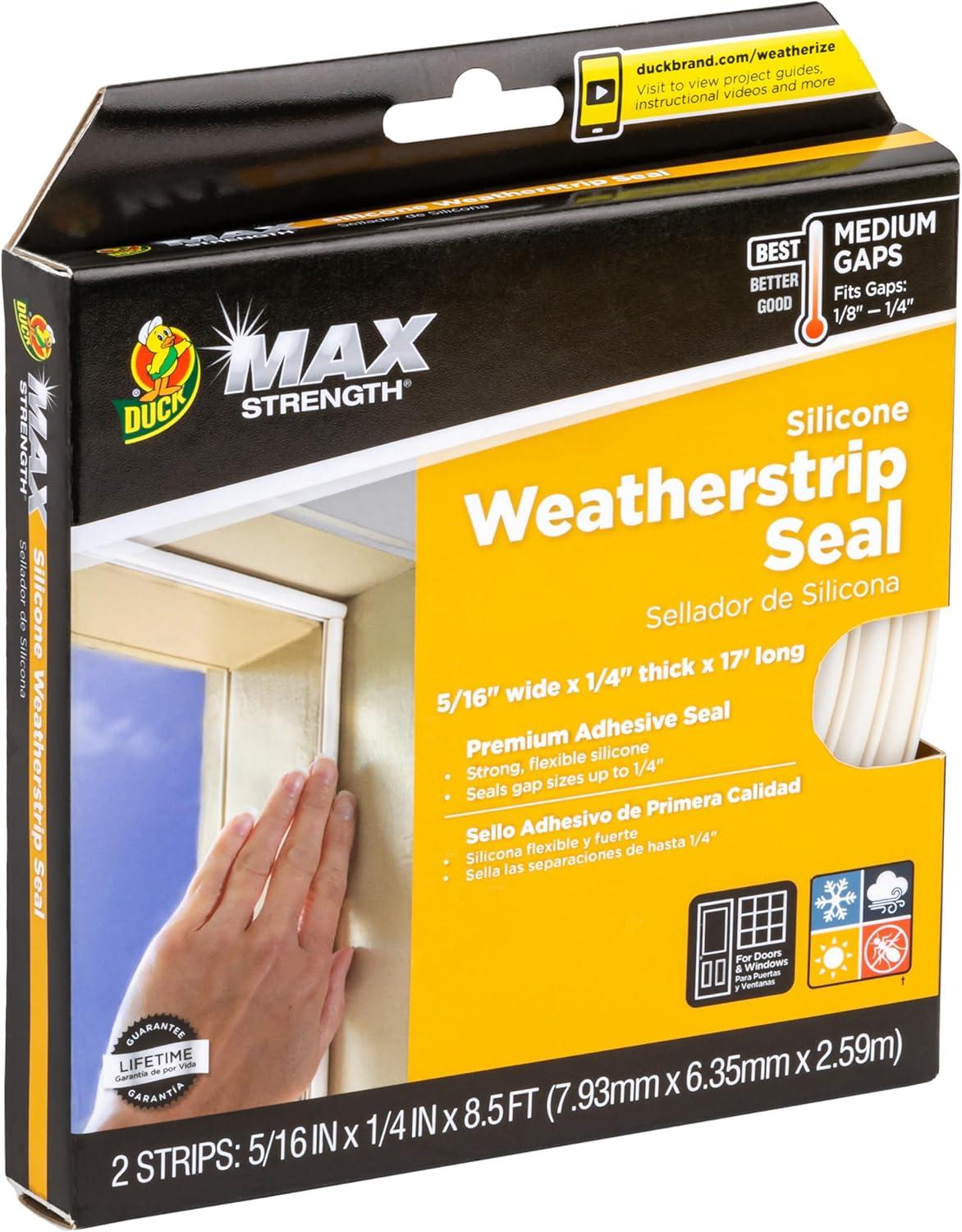Even small cracks and gaps around windows and doors can cause drafts that lead to high energy costs. Duck Brand Max Strength Silicone Weatherstrip Seals are used to seal smaller gaps up to 1/4 in. around windows and doors that may let outdoor air inside. They can also help keep out unwanted dust, insects and pollen during the warmer months. Designed with silicone, these self-adhesive seals come with a lifetime guarantee and won't crack or split over time. Simply separate the dual strip into two pieces, cut to size and then apply to your window or door for added weather protection.